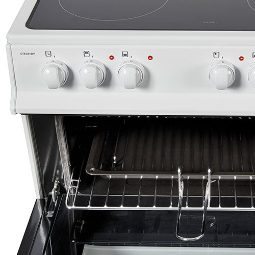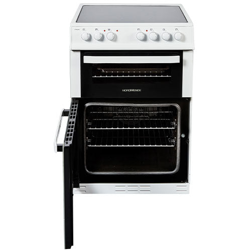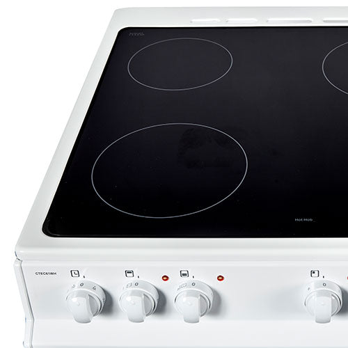 This white electric cooker comes with a large 58 litre main oven, along with a 35 litre top oven. It comes with an A energy rating and coated with an easy to clean enamel.