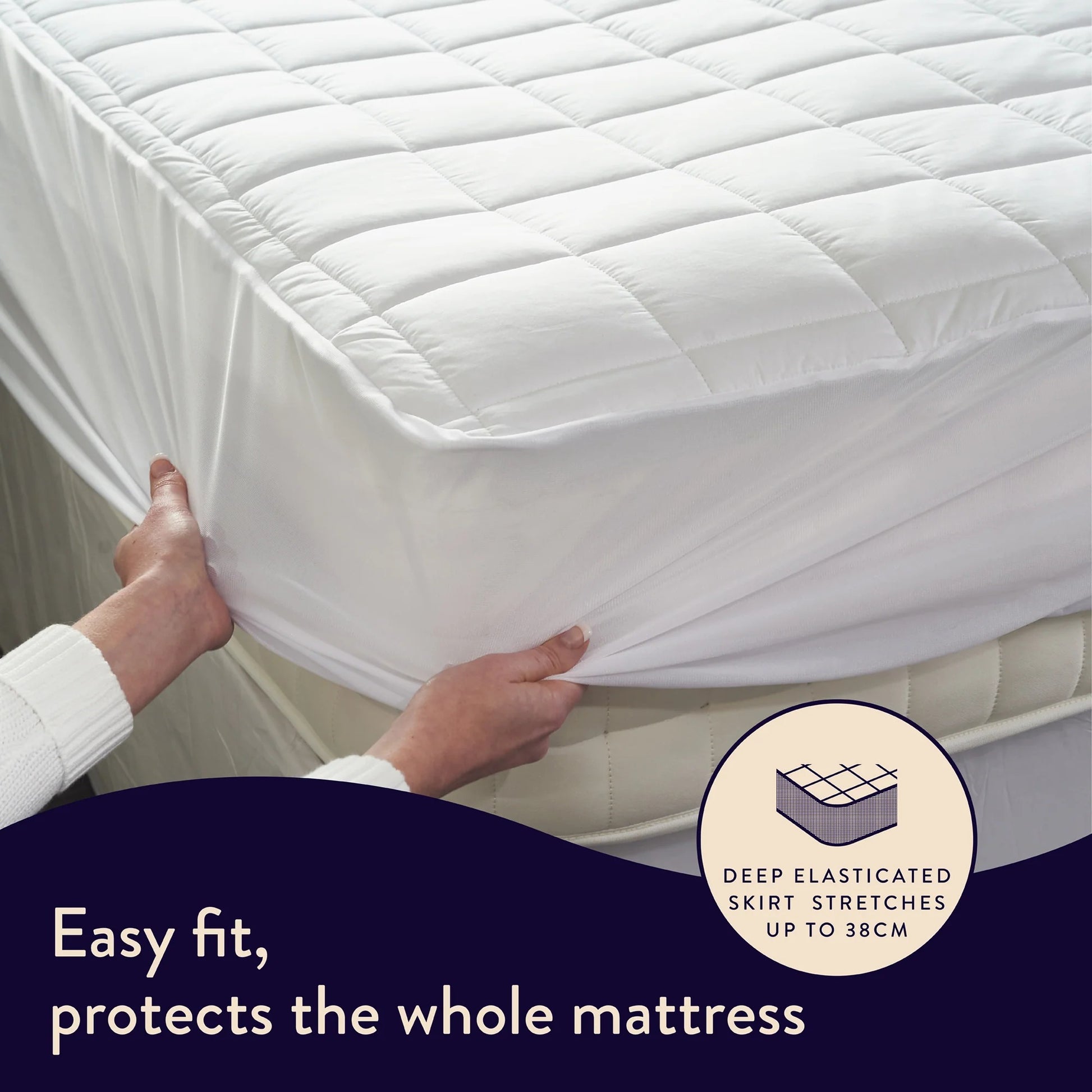 - Deep elasticated skirt stretches up to 38cm