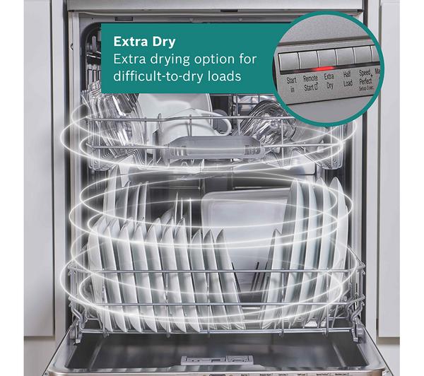 Imagine getting the dishes done with your voice. Use Amazon Alexa to control this Bosch Series 4 dishwasher and get a cycle started while you're busy doing other things. The Extra Dry function's great for those fiddly items that normally come out dripping. Need some peace and quiet? Just choose the Silence 50° program - it reduces the noise to a minimum so those loud washes won't disturb your cosy evenings.