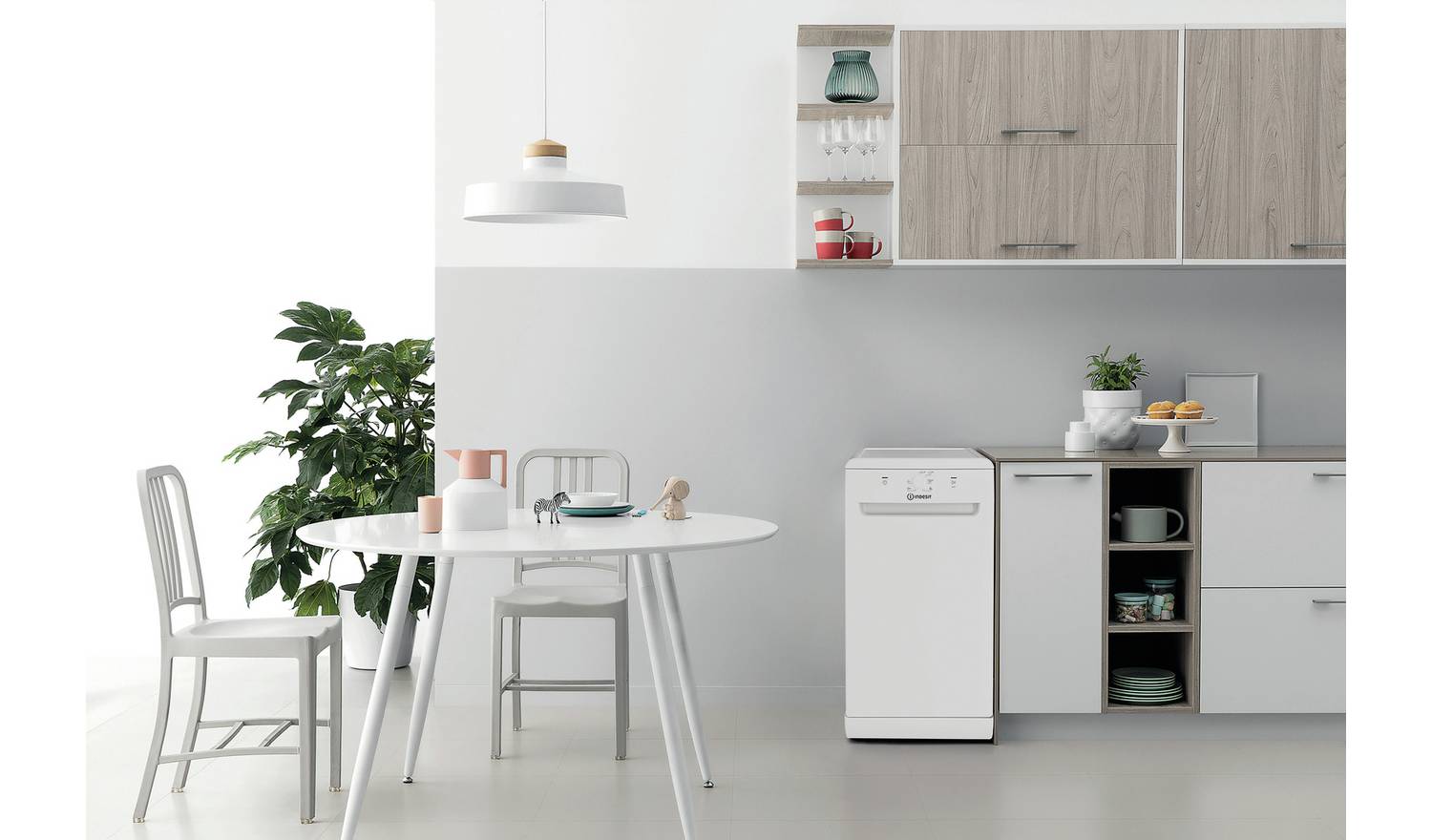 If you're limited on kitchen space, this Indesit slimline freestanding dishwasher fits perfectly into a 45cm area. Despite its compact size, it can accommodate up to 10 place settings, making post-meal clean-up a breeze. Adjustable baskets make it simple to fit larger and more awkward items when needed, while the Rapid 40 cycle quickly washes small loads when you're short on time. Plus, you can choose from 6 programmes via an easy-to-use dial control, making clean-up easier than ever.