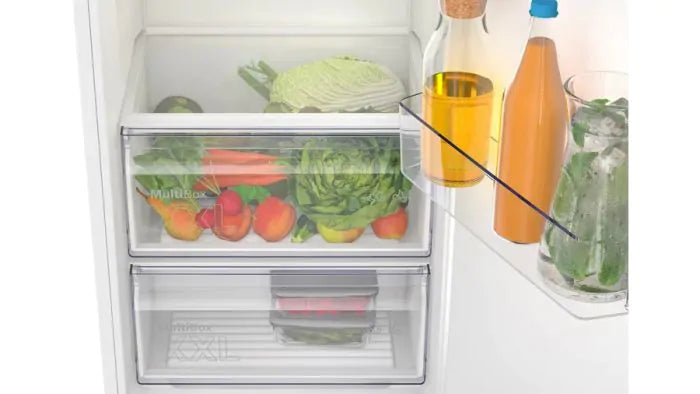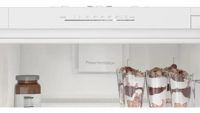 With the Super Cool function, you can lower your fridge temperature for a short time before you go shopping. This ensures your new food is kept at the right temperature. Simply push the button to lower the temperature by a maximum of 2°C. The function automatically switches back after 6-15 hours to prevent any power wastage. And if your appliance is connected, you can set the Super Cool function via the Home Connect app.
