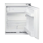 The Indesit Low Frost INBUF011 Integrated Undercounter Fridge is the ideal compact solution for busy homes needing modest cooling storage. With 126L capacity spread across two glass shelves, plus a dedicated salad crisper for delicate produce, it keeps your food organized. An 18L Icebox adds essential freezer space. Featuring an adjustable thermostat, E energy rating, and reversible doors, it's easy to install and perfect for efficient cooling in any kitchen.