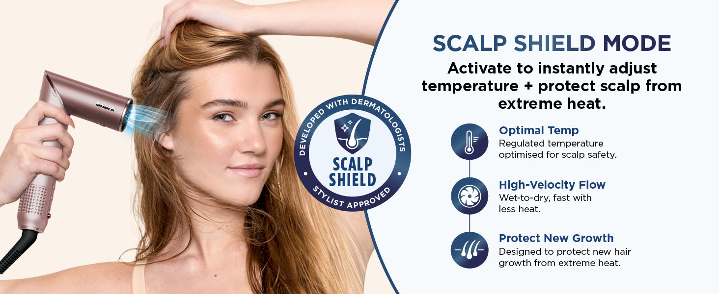 - Scalp Shield Mode: Designed to protect new hair growth from extreme heat