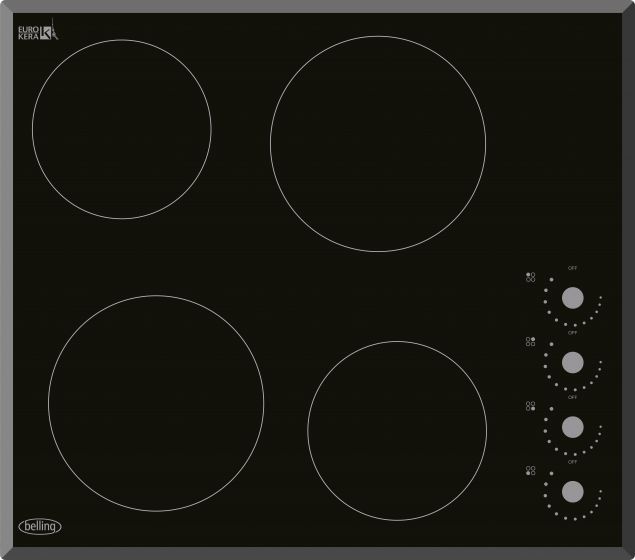 The Belling Ceramic Hob is finished in a stylish black, making it a good fit for the modern kitchen. This four element hob is easy to clean thanks to its smooth ceramic surface, interrupted only by the rotary controls on the side.