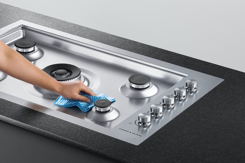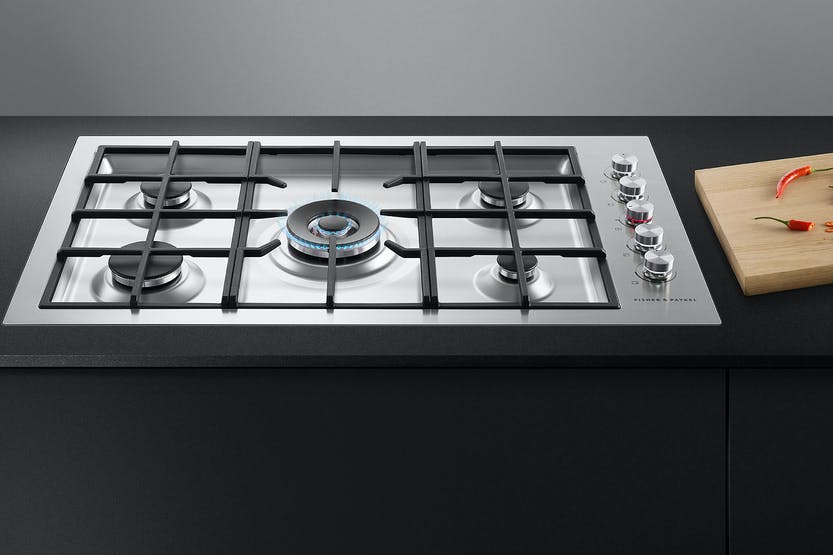 This Gas Cooktop’s burners are recessed into the work surface leaving the trivets flush and providing an integrated kitchen bench with a seamless look.