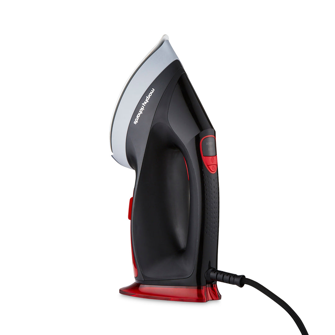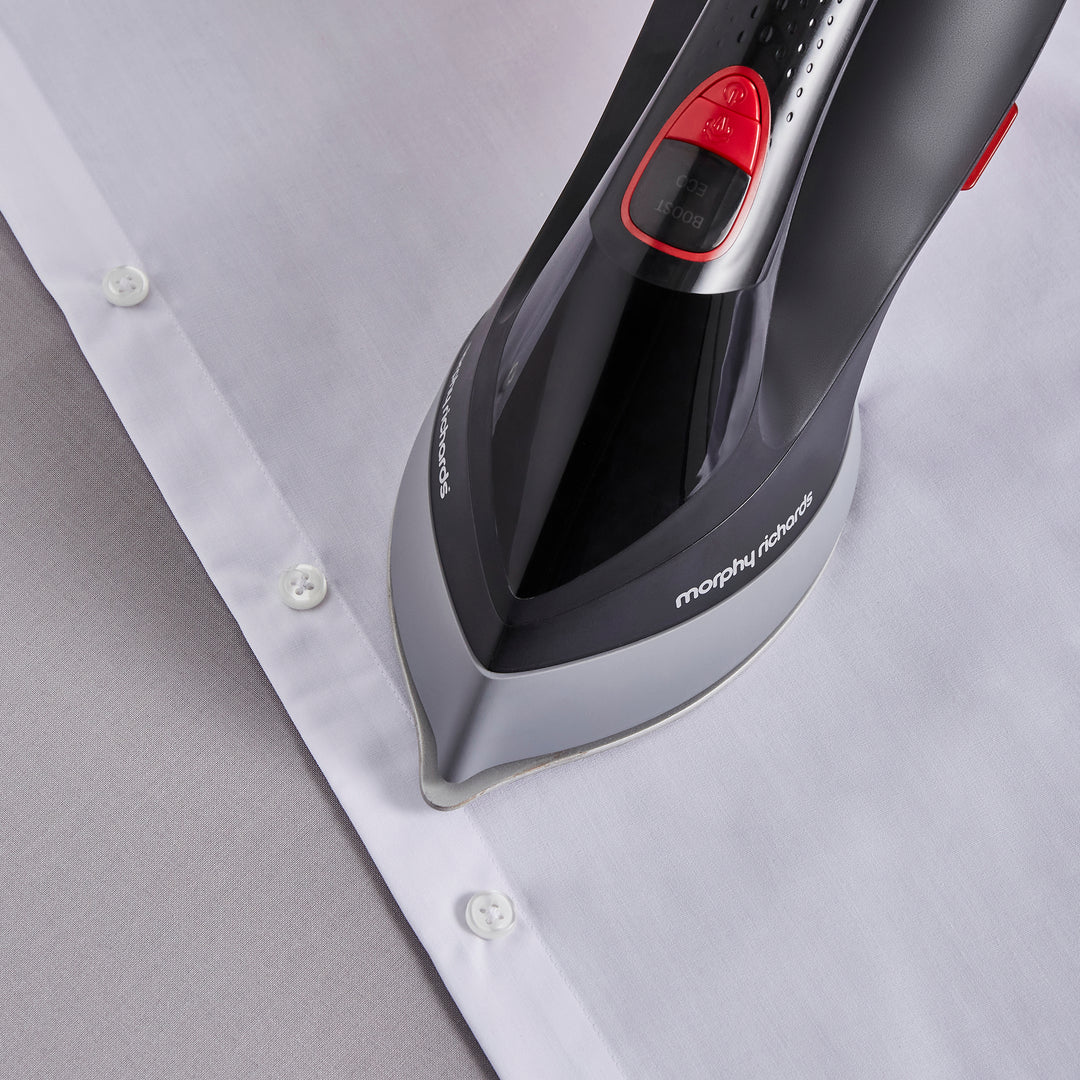 • Steam Settings: Eco & BoostChoose between Eco mode for lightweight cotton like fabrics and switch to Boost for extra steam when tackling stubborn creases.