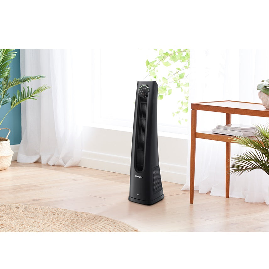 Sleek modern look in black is a seamless addition that accentuates existing décor. This tower fan offers a natural and unobtrusive cooling feeling, and can also be used for heating and purifying the air. Create a comfortable space in any room all year round.