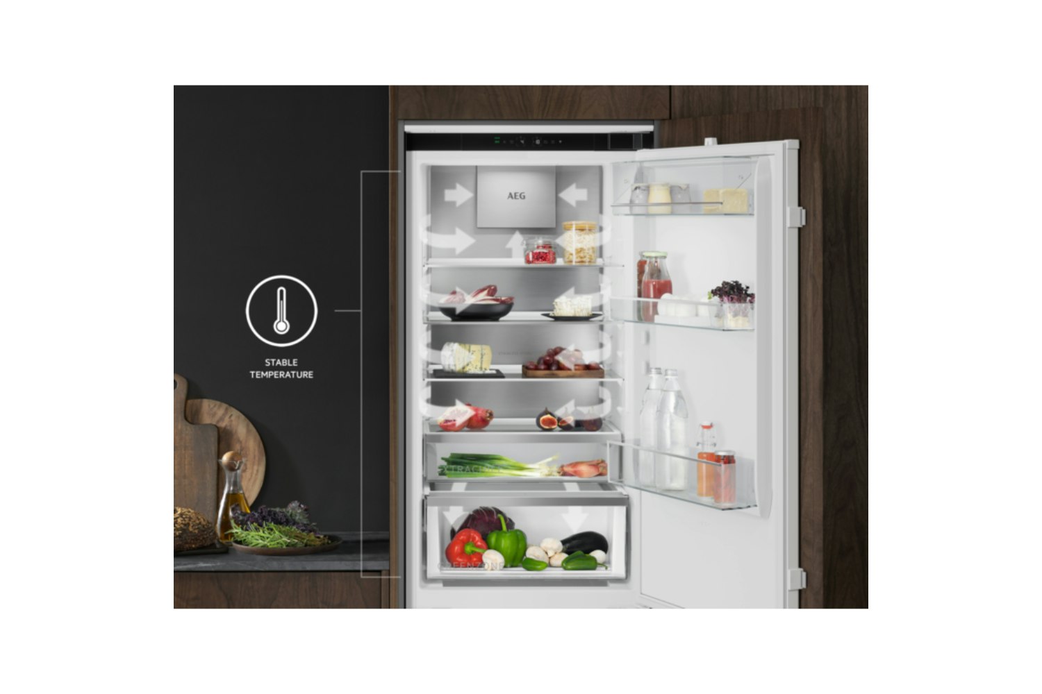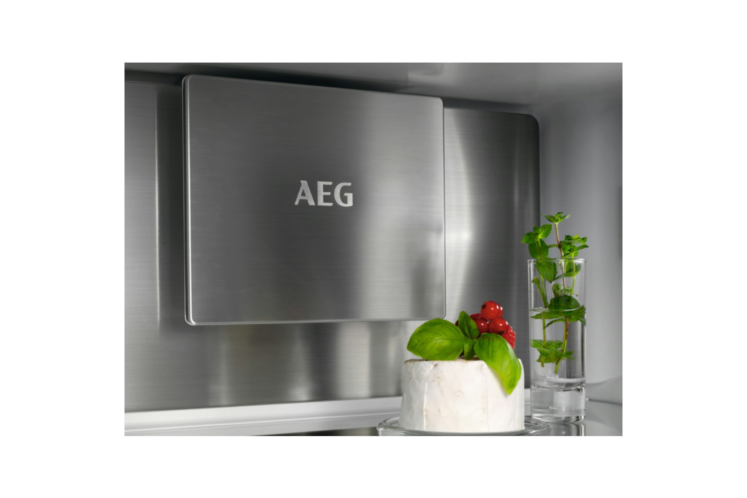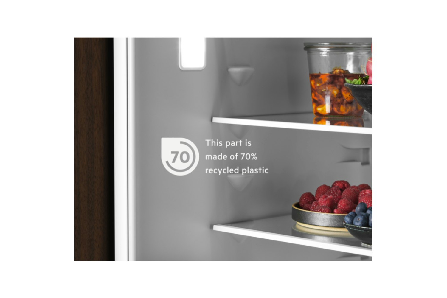 A new era of cooling is here. Introducing AEG fridge-freezer with an inner lining made of 70% recycled plastic. Plastic from discarded refrigerators is used to make new refrigerators, helping reduce waste thorugh circularity.