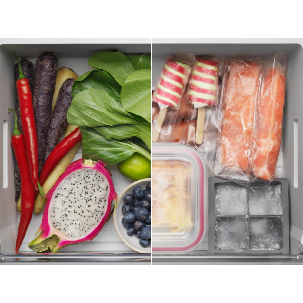 The freezer compartment is fully convertible, so you can set the freezer at +4°C to extend your fridge space or keep using it at its usual temperature between –15°C and –24°C.