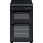 All you need in the kitchen for serving up delicious meals, The Hotpoint HD5V92KCB electric cooker with a ceramic hob comes in a sleek black finish provides a stylish yet traditional cooking experience in your home, the 50cm width cooker is split between a large 62L cavity and a secondary grill only 33L cavity. The main oven comes with catalytic cleaning liners, which use the heat of the oven to break down grease and fat, so you can spend more time cooking and less time cleaning.