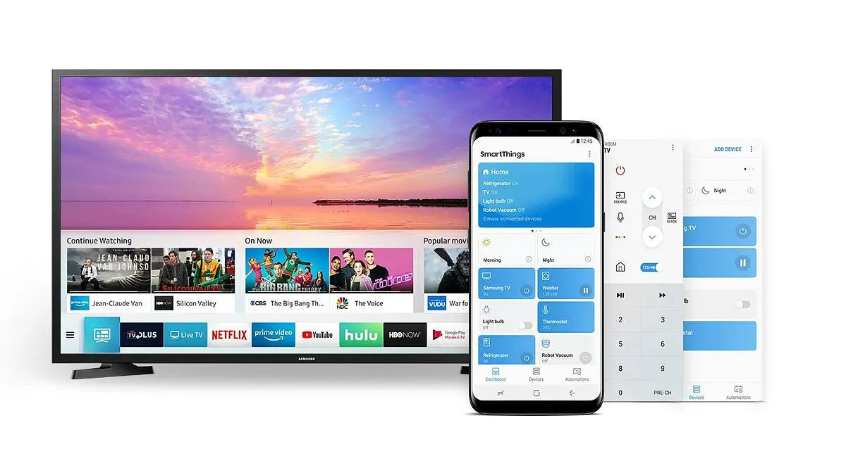 The SmartThings mobile app lets you quickly set-up your TV, connect your smartphone to your Smart TV and effortlessly access and control all of your connected devices. Automatically login into your accounts with simple, seamless smartphone connection and setup. Plus, you'll unlock great features such as Screen Mirroring, a TV Remote Control, and more*.