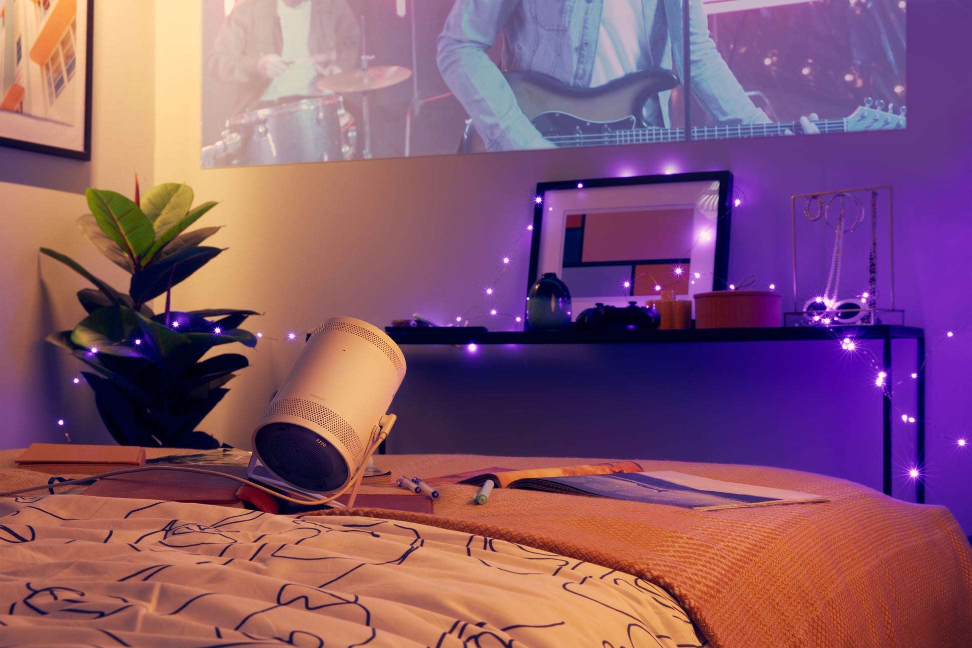 Too comfy to get up from the sofa? You can connect your phone using SmartThings or AirPlay2 and enjoy all the action straight off the ceiling!