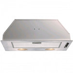 75CM Wide, Stainless steel 600m3h, 54 Db(A) Aluminium Filter, Slider Control, Outlet Size 150mm, 2 x 40 watt Tungsten Bulbs. If Recirculating 2 Carbon Filters Required.