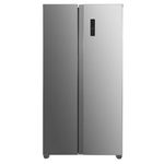 900mm wide, Inox American style, Total No Frost Technology, Inverter Compressor, E energy class,1770mm high,442 litre nett capacity, Electronic control, LED interior lighting, silver interior trims, recessed handle design, multi air flow, fast freezing, child lock, door open alarm, high temperature alarm, 39db max noise level, 9 hour power failure storage time, 287kw/annum energy consumption ,2 salad drawers & 2 freezer drawers, Total Capacity 442 litre (Fr:291 ltr FZ:151 ltr), Slim depth 590mm, Inox