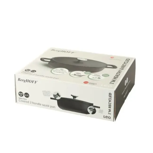 Frying, roasting or baking larger portions of meats and fish is a piece of cake with this 2-handle sauté pan. The CeraGreen coating, which is healthy and ceramic, allows you to cook with little to no oil, releases food easy and is easy to clean. It’s recycled aluminium body and full disk base ensure a fast and even heat distribution for energy-efficient cooking on all cooktops including induction. The lid includes self-basting condensation bumps and an integrated straining function. On top of that you can safely take the pot out of the oven or strain boiling water thanks to the removable silicone sleeves.