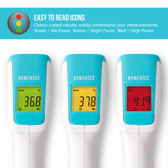 Using a standard thermometer can sometimes be quite invasive, particularly for children who aren't aware of why they're having their temperature taken from their ear, armpit, or mouth. The HoMedics Non-Contact Infrared Body Thermometer is the ideal solution if you want to take readings without bothering your child. Also if you're monitoring the temperature of your baby, you won't need to disrupt them during their nap.