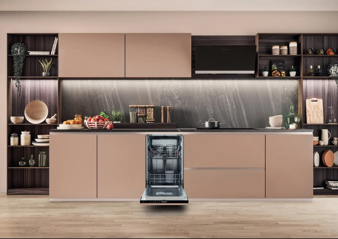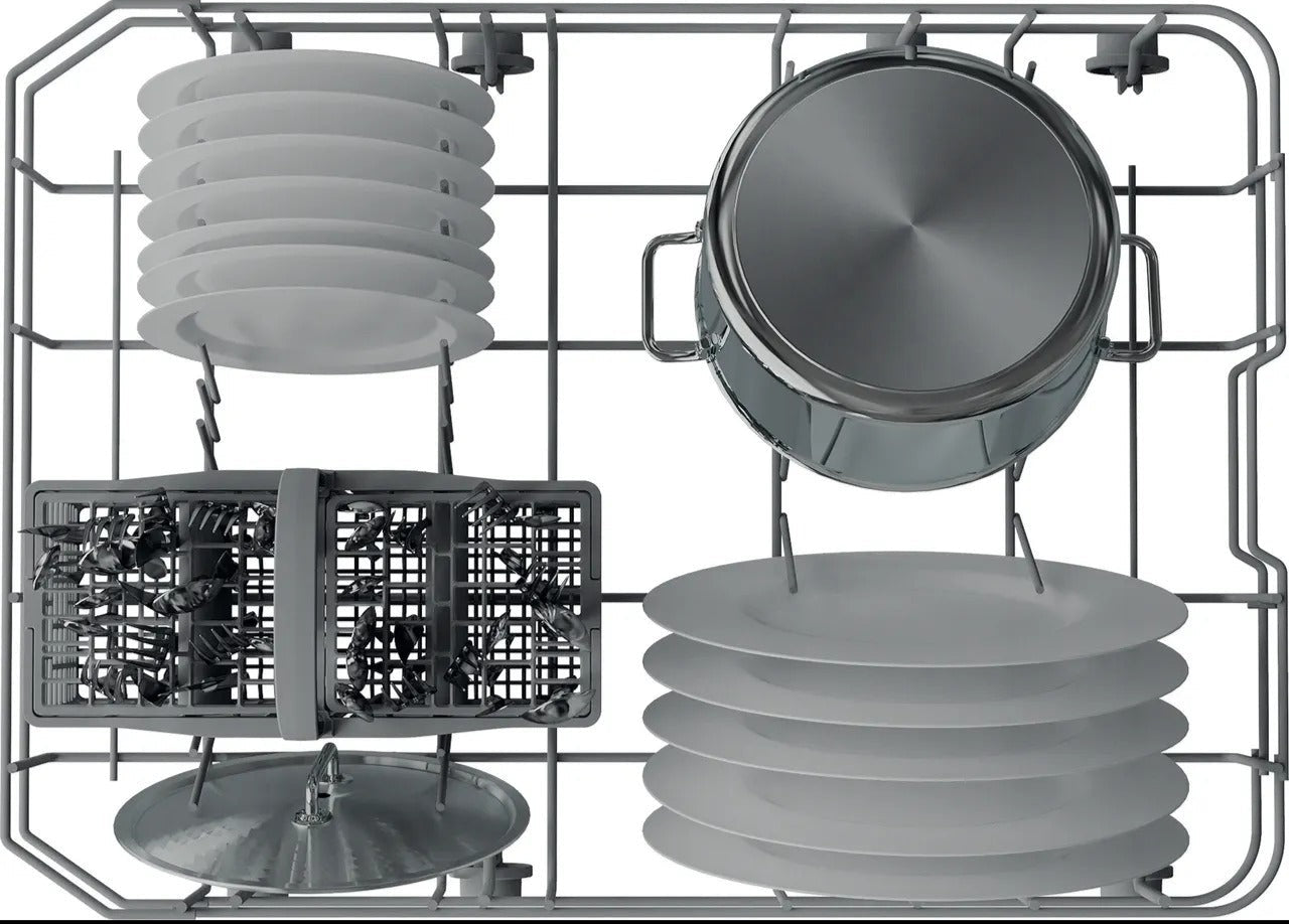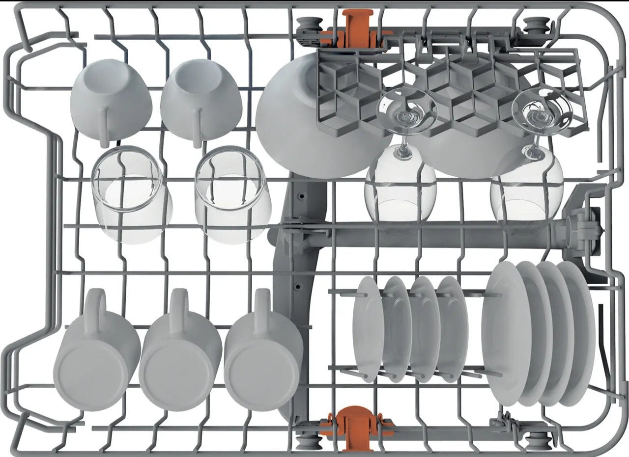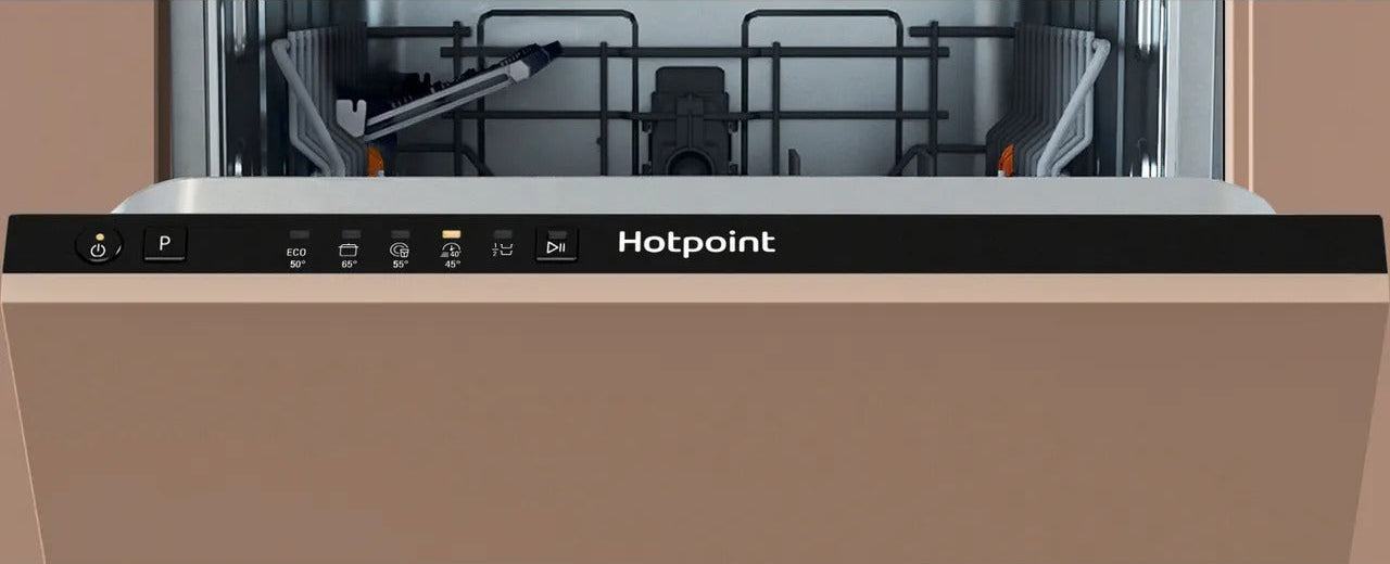 Say goodbye to cleaning the pots for good with this Hotpoint slimline dishwasher. You’ll get all your trays and serving plates in thanks to the Height Adjustable Top Basket. It moves to make more headspace for those taller dishes, so you don’t need to squash them in. Can’t seem to fill the machine often enough? Pop on a Half Load setting. It’ll use less energy and water, so you’re not wasting anything or waiting days to put on a cycle. And for the times you’re in a rush, the Rapid 40’ programme will get everything sparkling in less than an hour. Looks like it’s time to pop your feet up, your work is done.