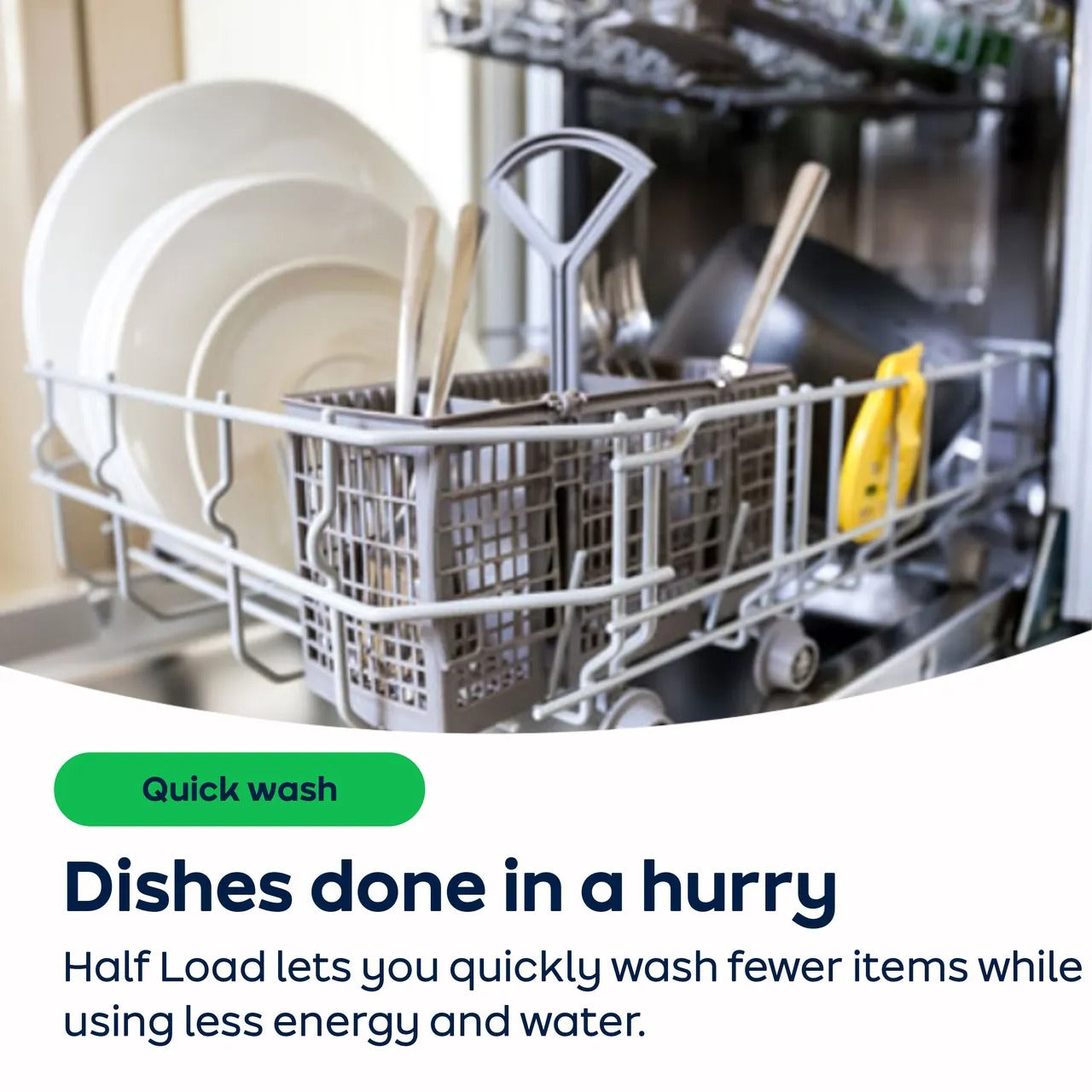- Half Load — Quick wash that uses less energy and water