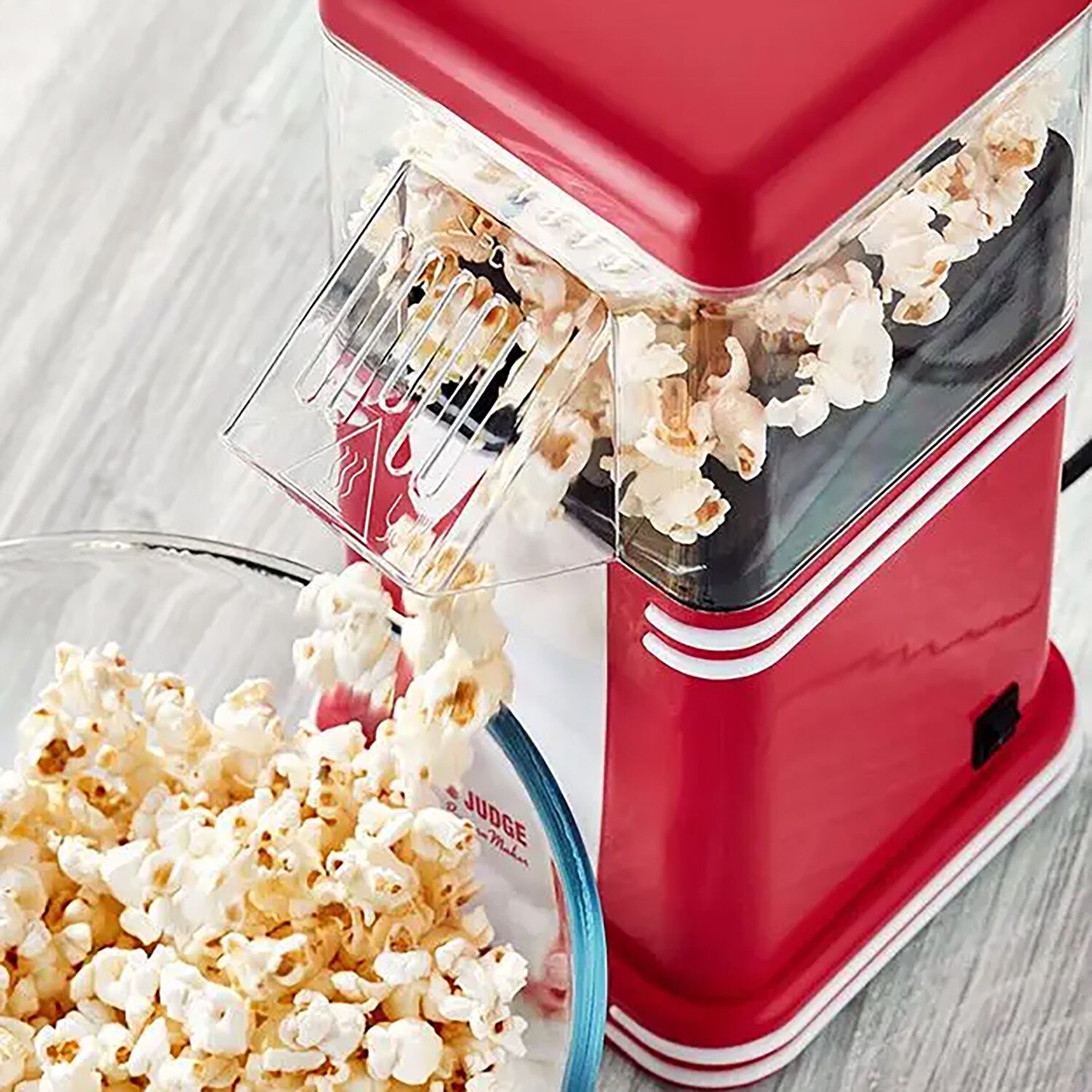 Indulge in a guilt-free movie night with the Judge Electricals 1200W Retro Popcorn Maker, your new favourite kitchen companion. This sleek popcorn maker pops kernels using hot air, eliminating the need for oil or butter and creating a delicious, low-fat snack in less than a minute.