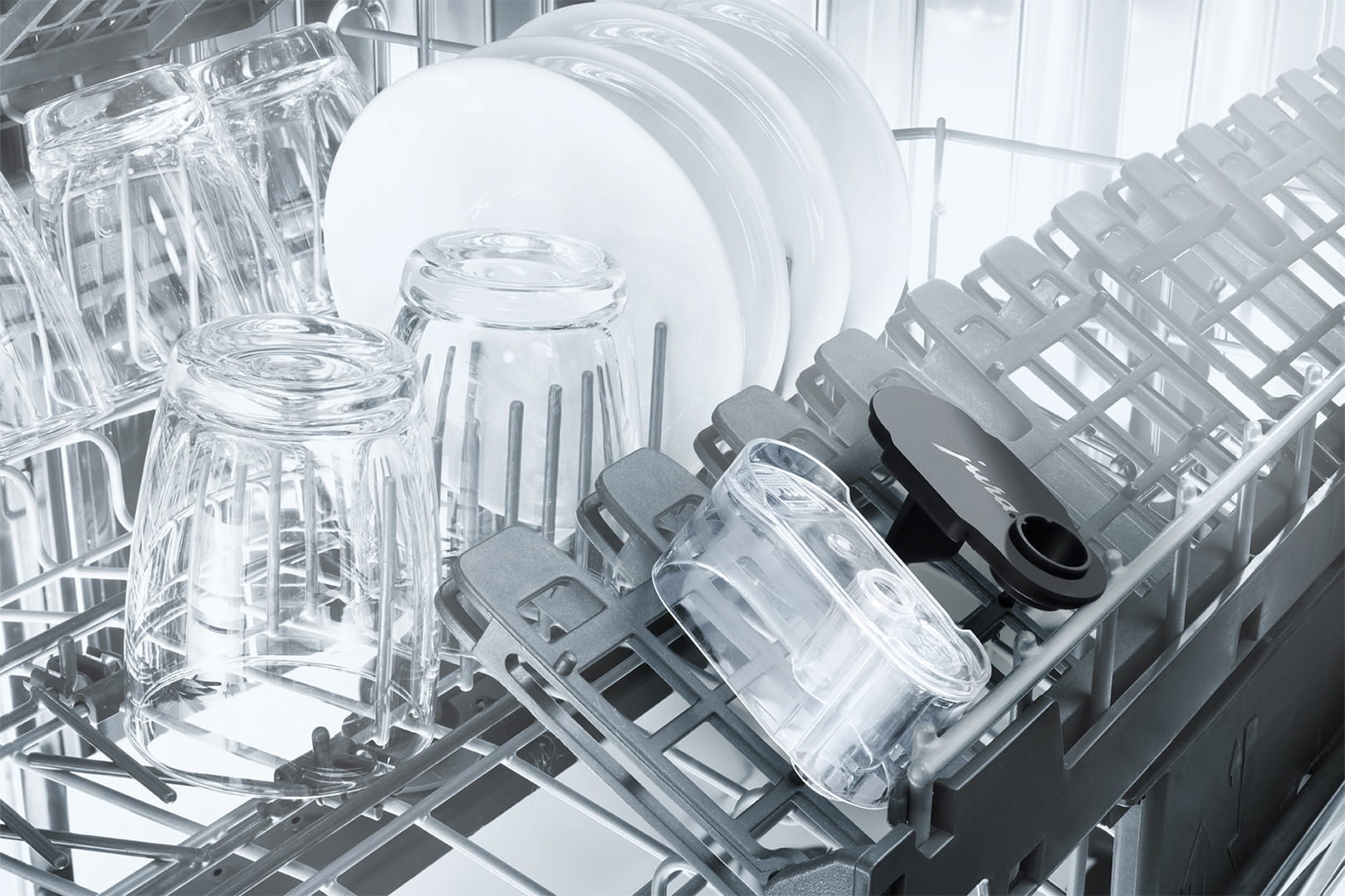 The syrup attachment is easy to open. Both parts are dishwasher-safe.